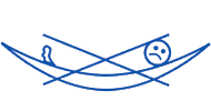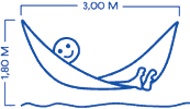 The most important thing is to arrange the hammock's suspension loops at head height, and only some 3m distant from each other, thereby allowing the hammock to hang down in a deep arc. This then allows a diagonal lying position, like a real Brazilian ("from corner to corner"), and not straight. This keeps the back straight and is the secret of being able to lie comfortably and relaxed for hours on end in a hammock. As wobbly wooden cross-pieces are intentionally not used, one lies securely and without fear of falling out!.