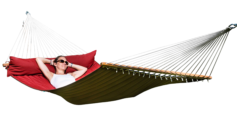 Die California Hängematte in der XL Grösse ist besonders gut für zwei Personen geeignet. Der Spreizstab aus nachhaltiger Forstwirtschaft mit der Länge von 140cm ermöglicht eine wunderbar breite Liegefläche. Die Seile werden durch den Spreizstab geführt, dadurch ergibt sich auch eine angenehmen Wölbung.
