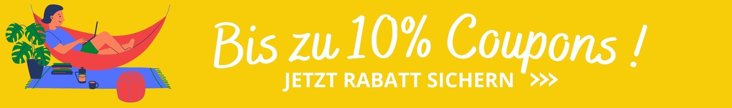 * Gültig für Hängematten, Hängesessel, Hängehöhlen, Zelte, Tarps, Gestelle der jeweiligen Hersteller Nicht gültig für Zubehör oder andere Produktgruppen. Nicht kombinierbar mit anderen Rabattaktionen wie zum Beispiel selbst zusammengestellten Produktsets und daraus resultierenden Rabatten (Produktbündel - Kaufe Produkt X und Produkt Y , dann ist eines oder beide der Produkte um einen Rabattsatz günstiger). Pro Bestellung nur ein Code einlösbar, nicht mit anderen Codes kombinierbar. Aktion gültig bis 4.6.2025 oder solange der Vorrat reicht. Wir behalten uns das Recht vor, die Aktion vorzeitig zu beenden oder je nach Verfügbarkeiten zu ändern.